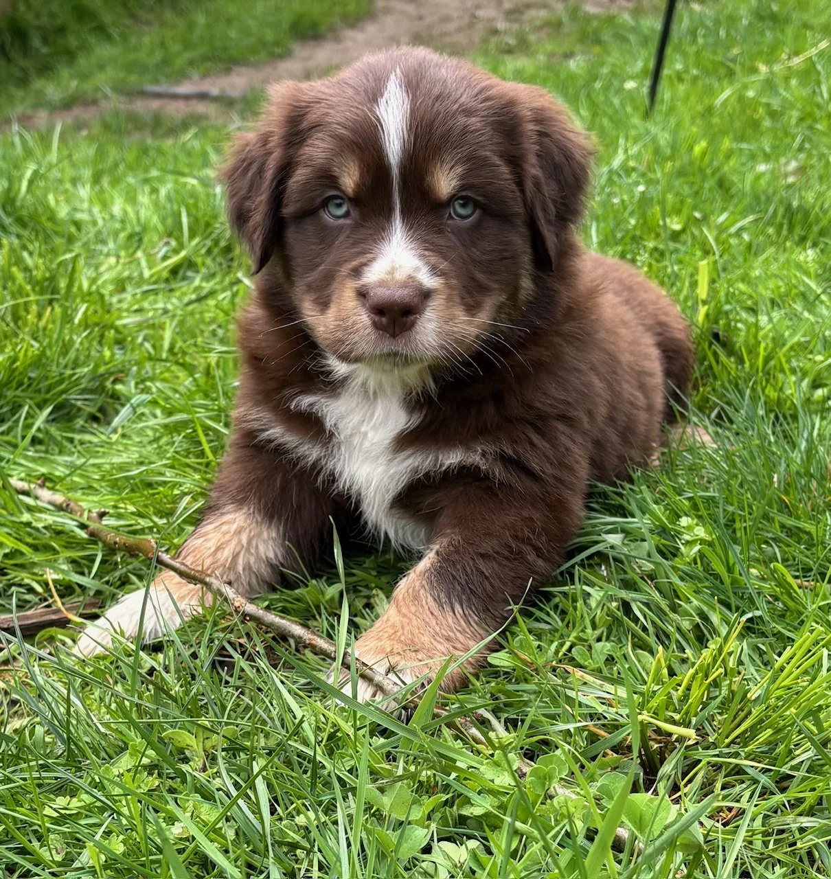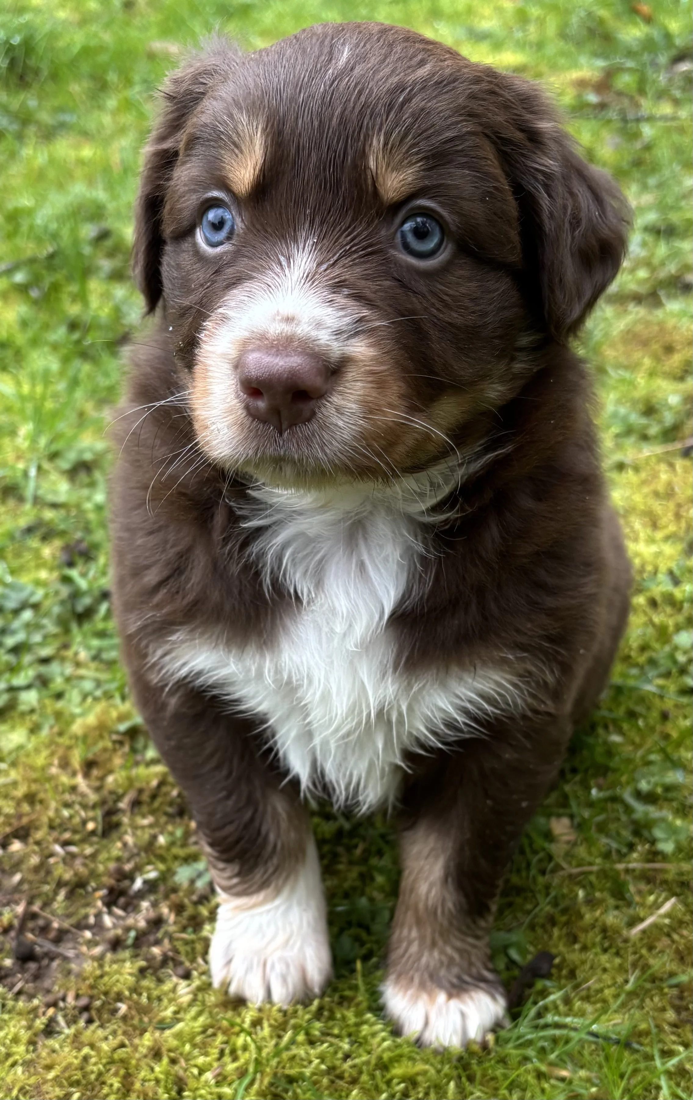 Australian Shepherds can produce a wide variety of beautiful coats and eye colors. There are traditional Bi/Tri-colors (red/black/white), and Red or Blue Merles with randomized speckles and patches. Eyes range from dark browns to greens to bright blues or anywhere in between. Aussies have a strong herding instinct that drives their personalities and requires them to have a job to do; whether it be working on a farm or just playing fetch and running every day, they need mental and physical stimulation to thrive! Planned litters and available puppies will be posted below with additional information.