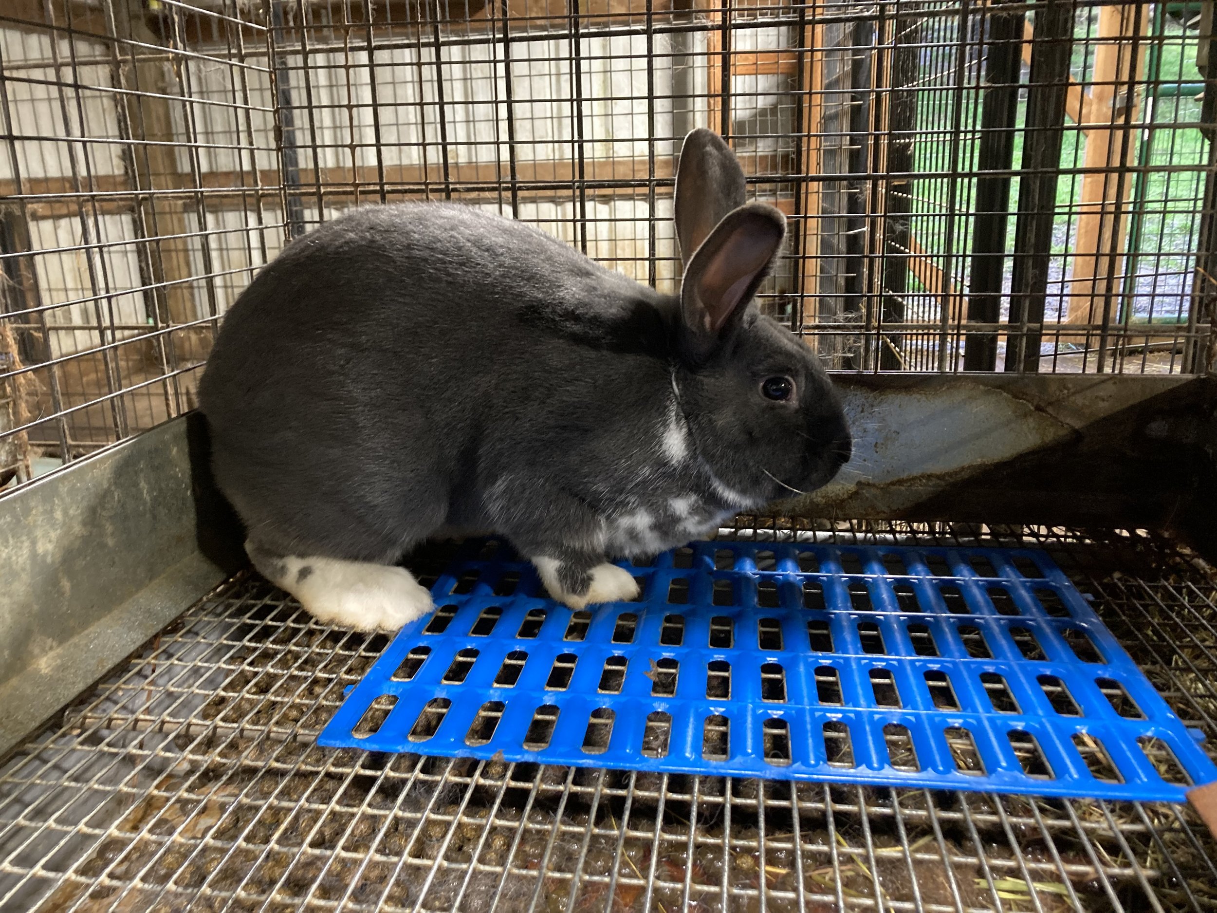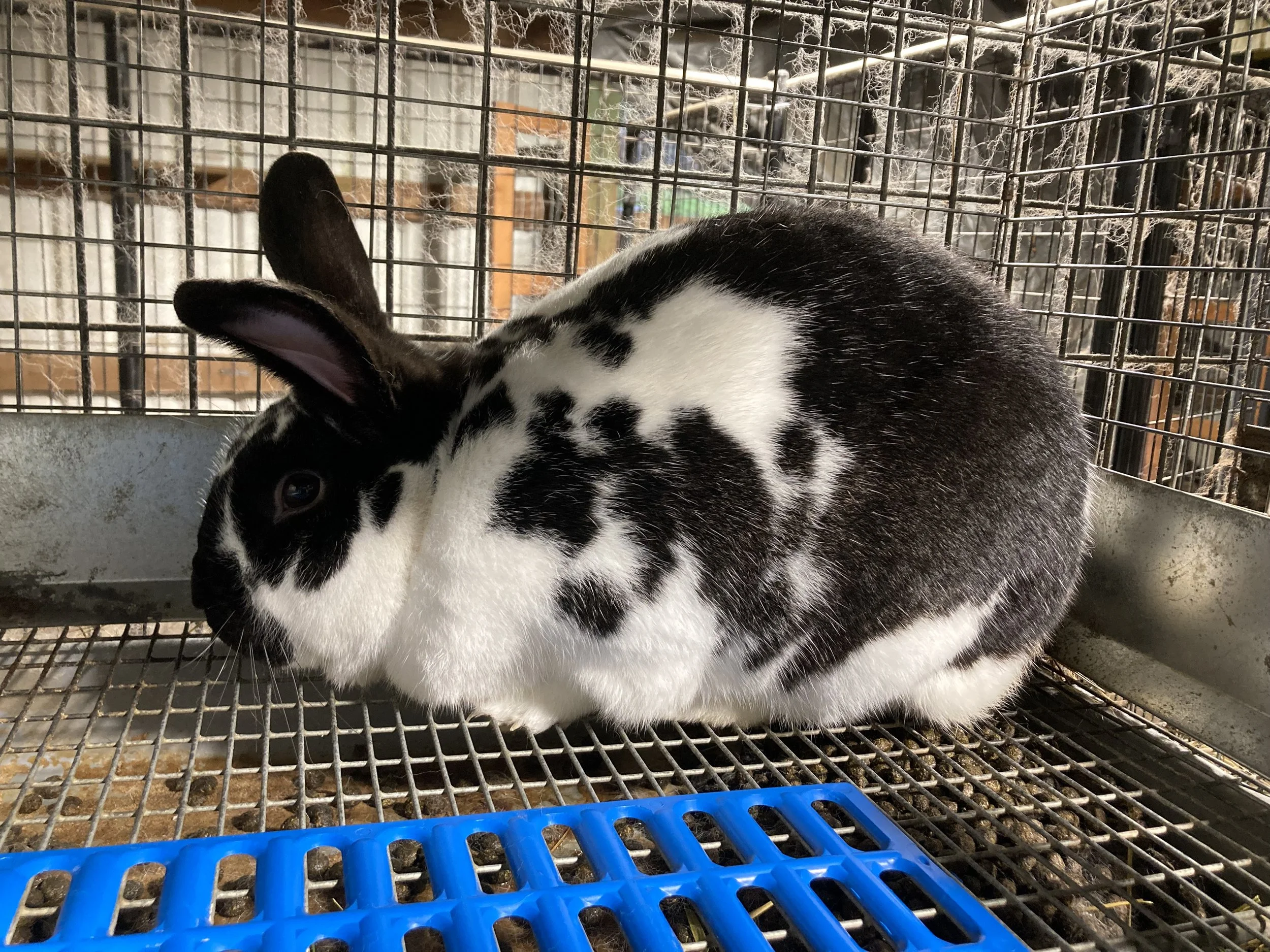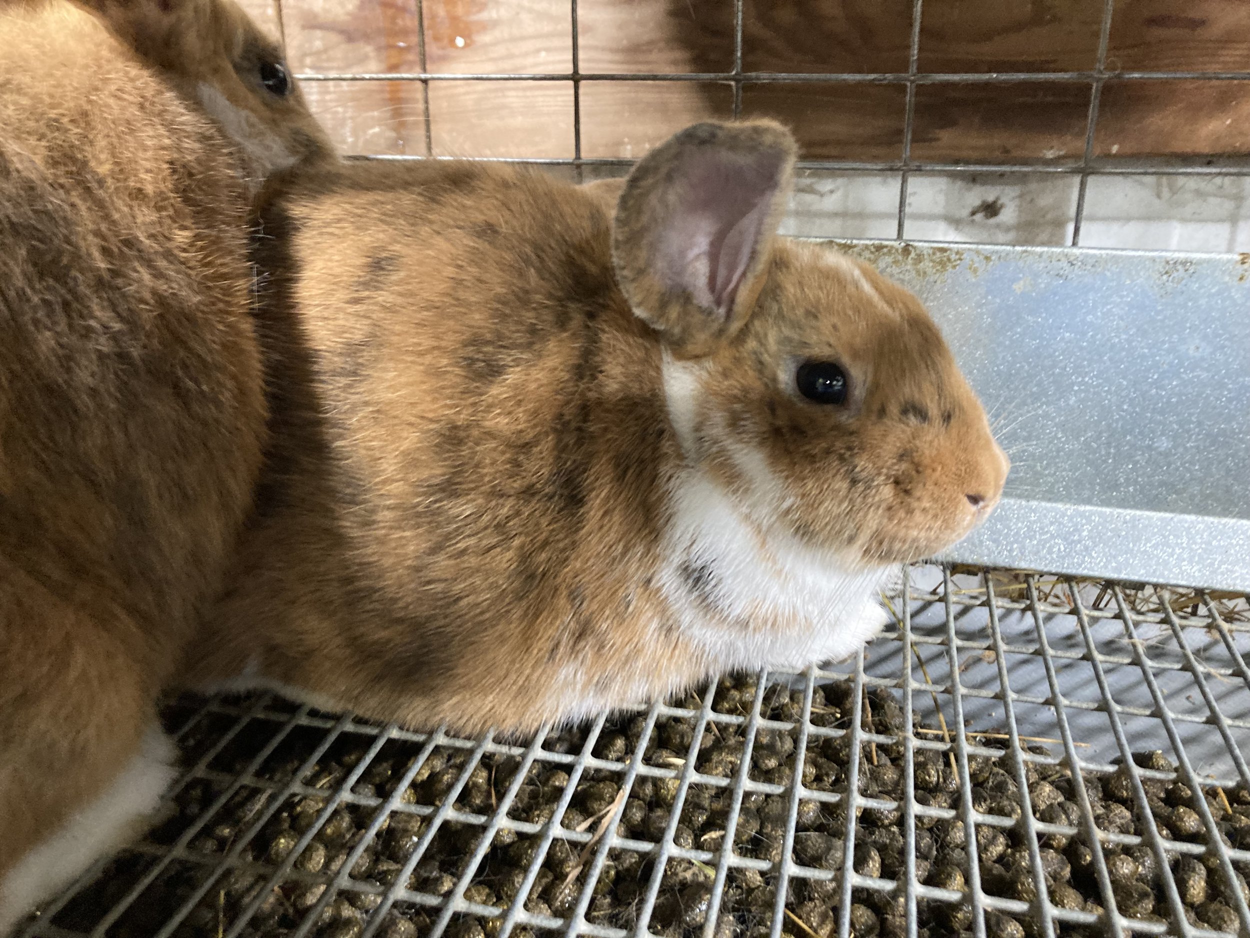 Cleopatra is a beautiful bunny with a rare gene that gives her “tiger striping.” She’s still too young to have kits but we’re excited to see what she can create!